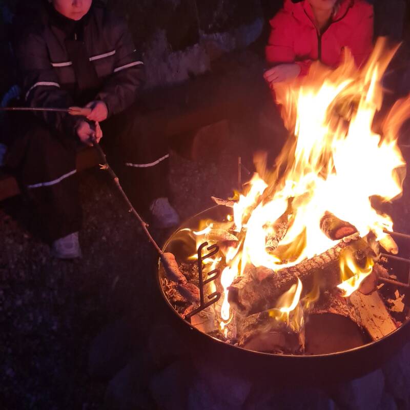 Søndag kveld fyrte Dorthea og jeg opp bålpanna ved snekkarstua. Nabo Line kom med pinnebrøddeig, og vi hadde en fin stund rundt bålet med god prat, mat og drikke – og lesing fra Bibelen.