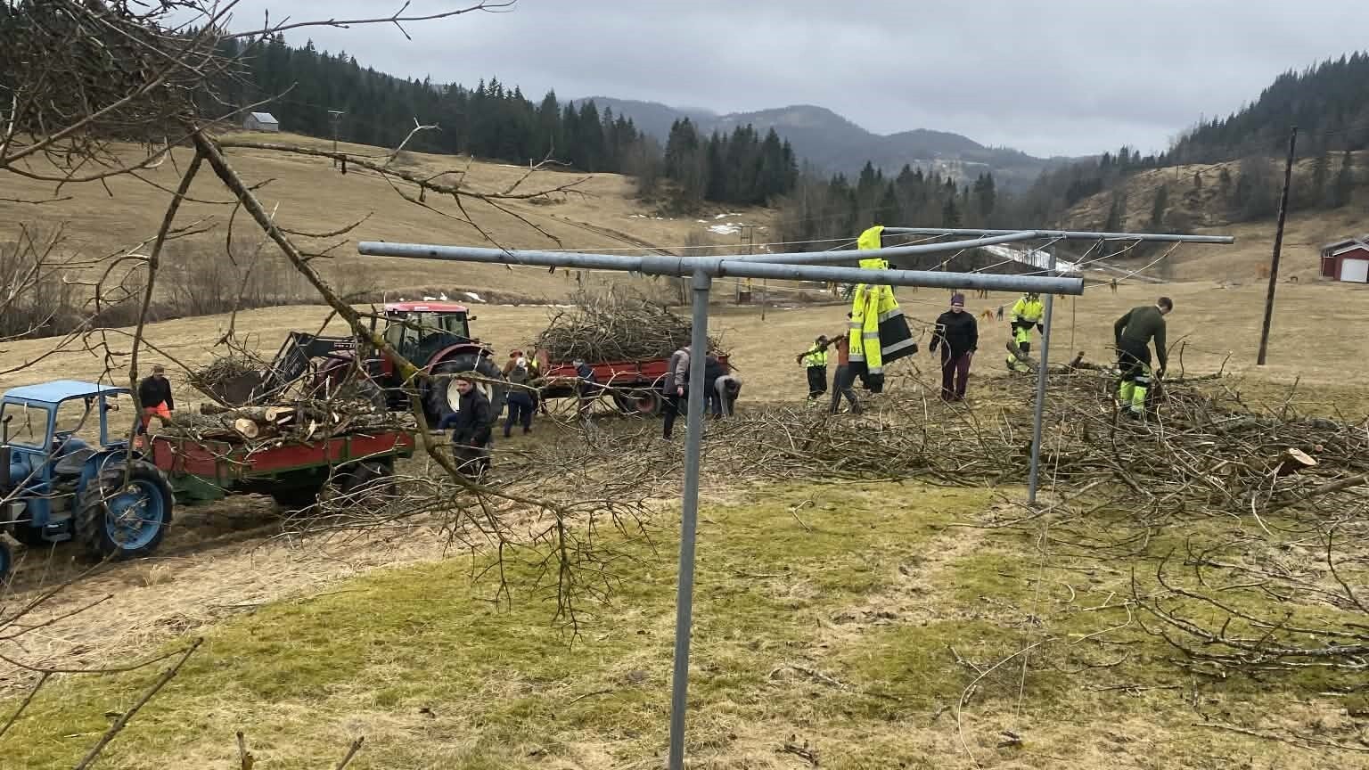 På onsdag kjørte vi til mitt barndomshjem. Der var vi hele 19 stykker samlet i hagen for å rydde kvist etter to store (og halvdøde) asketrær.